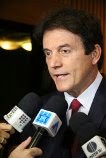 em coletiva na Vice-governadoria. O governador eleito recebe a imprensa para