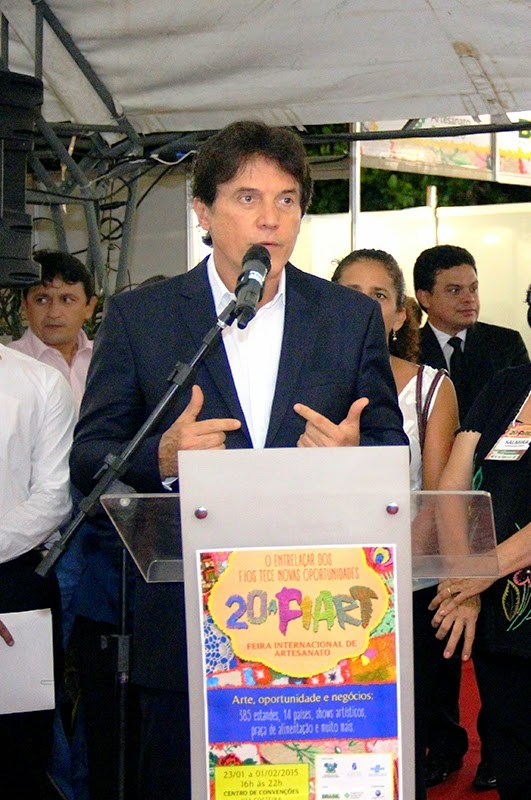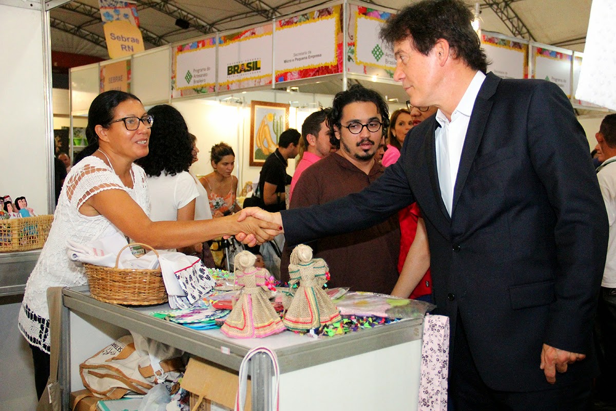 Robinson Faria passeou por todas as áreas da Fiart, que conta atualmente com 7 mil metros quadrados, no pavilhão central do Centro de Convenções e abriga 382 estandes, divididos entre o artesanato local, regional, nacional e internacional. Ele lembrou que já havia visitado muitas outras vezes o evento que já conta com 20 anos de realização e que sempre admirou o idealismo do empresário Neivaldo Guedes pela criação da Fiart. E que, agora, como governador, quer incentivar ainda mais a cadeia produtiva do artesanato. Em sua companhia, a primeira dama do Estado e também titular da Secretaria de Estado do Trabalho, da Habitação e da Assistência Social (Sethas), Julianne Faria, que teve um importante papel no apoio aos artesãos participantes da Feira, na ocasião em que provocou uma audiência em Brasília, junto à Secretaria Nacional de Micro e Pequena Empresa e articulou a participação na Fiart do Programa do Artesanato Brasileiro (PAB), do Governo Federal. A coordenadora do PAB, Ana Beatriz Ellery, disse em seu discurso que a partir de 2015, há a pretensão de sempre apoiar a Fiart nos próximos anos e que a Secretaria Nacional de Micro e Pequenas Empresas pretende fazer parcerias com os governos estaduais para levar o artesanato brasileiro para as feiras internacionais.